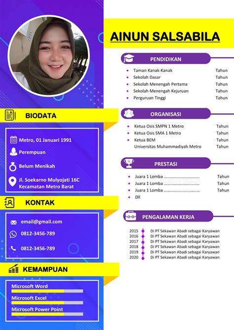 Informasi pribadi adalah bagian penting dari CV Anda. Pastikan untuk menyertakan: